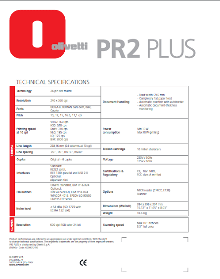 Máy In Sổ OLIVETTI PR2 Plus – Máy in đặc biệt PR2 +
